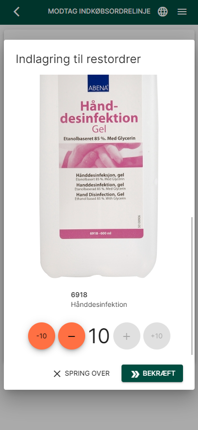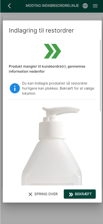PeakWMS foreslår den mængde, som der er bestilt af kunder, og som kan frigives med det samme de lægges på lager. Når du klikker på bekræft, skal du vælge en lokation som varerne skal ligge på.