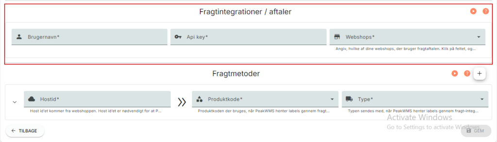 OBS! Du skal have en aftale med fragtudbyderen, for at opsætte din fragt i PeakWMS.