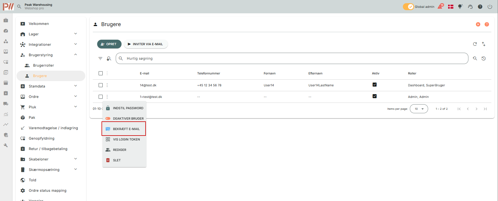- Brugerstyring: Bekræft bruger som brugerrollerettighed