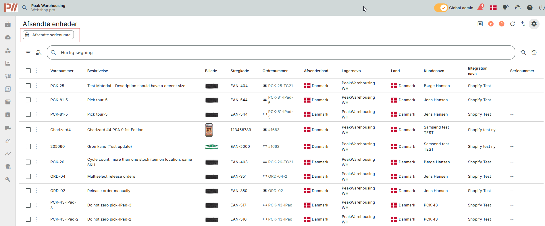 Rapporten "Afsendte serienumre" er blevet omdøbt til "Afsendte enheder". Rapporten indeholder nu alle afsendte linjer, også dem uden serienummer. Til rapporten er tilføjet følgende kolonner: