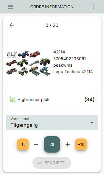For en assortment gælder, beholdningen udelukkende ligger på "hovedproduktet". PeakWMS holder ikke styr på, hvor mange underprodukter, der er på lager.